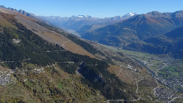 Rando de l'autre côté de Loèche. Avant de commencer je descends ma moto à Gampel dans la vallée du Rhône et remonte en car. Une contrariété va presque me gâcher la journée....j'ai oublié la clef sur le coffre de la moto...advienne que pourra, je finirai par faire confiance au destin et à l'honnêteté....