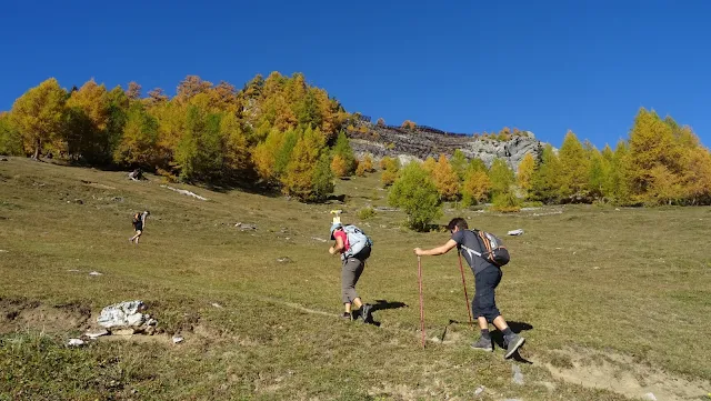 Le chemin commence dans les mélèzes qui commencent à prendre feu...magnifique. On continue sur des alpages pour finir sur la lune....Superbe. Le vol m'amènera à 3200m et au plus loin vers la Plaine Morte...Je n'ai qu'une voile de rando et non de cross, je n'insiste pas sur la distance bien que toutes la chaîne me fait envie...à 3200 tout est à portée....